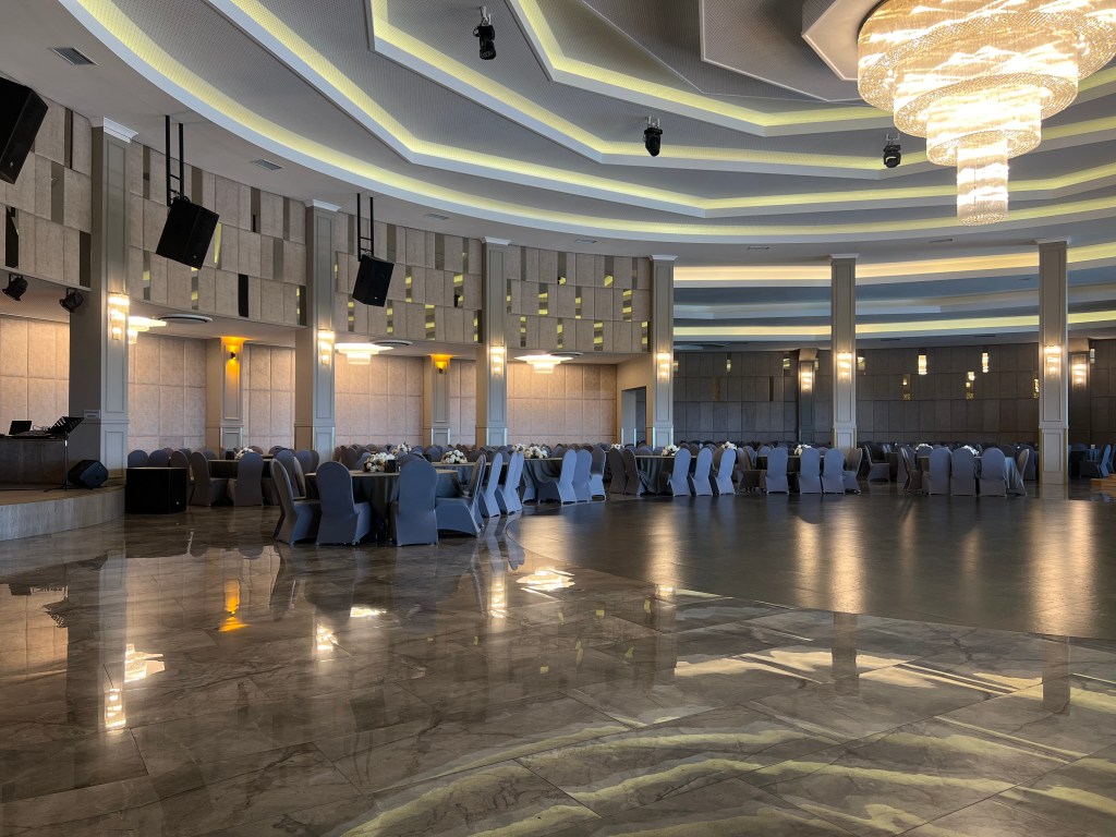 Altın Salon, 1200 kişilik dev kapasitesiyle en büyük davetlerinize ev sahipliği yapıyor. Modern mimarinin estetikle buluştuğu salonumuzda, yuvarlak tasarımı sayesinde her konuk sahneyi ve birbirini rahatça görebilir, anın büyüsüne tam anlamıyla dahil olur. Geniş, 300 kişilik eğlence pistimizde ise sevdiklerinizle doyasıya eğlencenin tadını çıkarabilirsiniz. İster yemekli bir ziyafet, ister coşkulu bir eğlence veya daha sade bir buluşma olsun, Altın Salon’da her türlü organizasyonunuzu hayallerinizin ötesine taşıyoruz. Unutulmaz anlar için kusursuz adresiniz.
