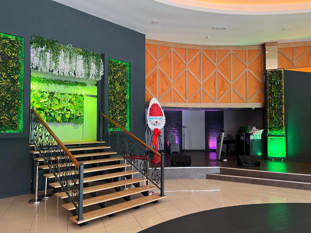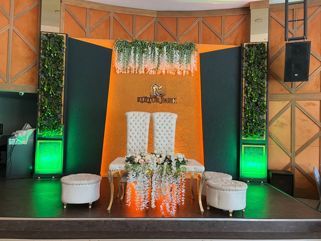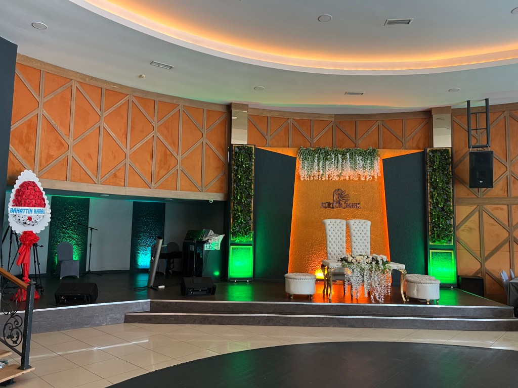 Taç Salon, 600 kişilik kapasitesiyle hem butik hem de orta ölçekli davetleriniz için ideal bir seçim. Modern mimarinin zarafetiyle tasarlanmış salonumuz, şık yuvarlak ve kare masalarla dekore edilerek her türlü konseptinize uyum sağlar. Gelin odasından doğrudan sahneye inen özel merdivenimizle, gelinlerimize peri masalı girişi sunuyoruz. Şehrin büyüleyici manzarasına hakim, üzeri açılır-kapanır 150 kişilik terasımızda yıldızların altında unutulmaz anlar yaşayabilirsiniz. İster yemekli bir davet, ister coşkulu bir eğlence veya daha sakin bir organizasyon planlayın, Taç Salon’da hayallerinizi gerçeğe dönüştürmek için buradayız.